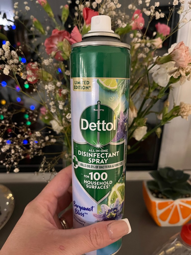 - Take it home and use a Dettol disinfectant spray on the book – The one I use is the Dettol in a spray can that gives a light mist and doesn’t drench the book. Then I leave it to air dry. This makes me feel like the book has at least been disinfected and ready for my hands to touch and read and there’s no contamination or remnants of others peoples hands or lifestyles.
