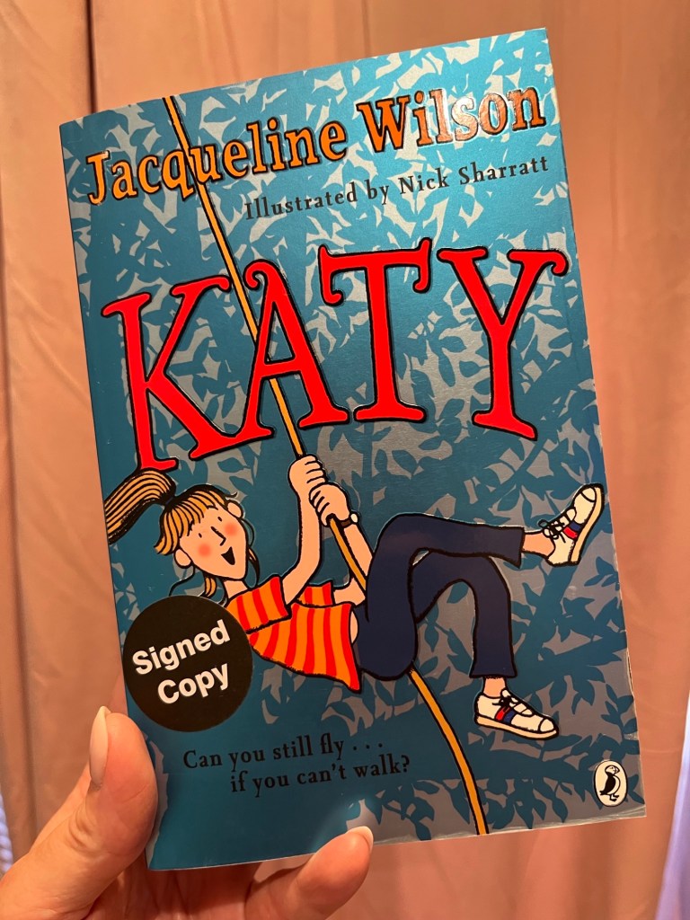 As well as books for adults they also house a cute kids section at the back of the store which is where many a signed copy from the local author, ‘Jacqueline Wilson’, reside, who as a child I read many of her books, and even my children have gone on to read many of her books. But due to there being an almost dedicated shelf to her, I just had to get my paws on a signed copy of one of her books. The one me and my daughter chose together was ‘Katy’… This one stood out to us because on the back the blurb it mentions about how Katy was one for ‘Flying‘ and being adventurous until she has a horrible accident. And it kind of hit home, as my husband, my daughters father had a terrible accident where he was run over, had to have an amputation and had to learn to walk again. We just felt this book might give us some feeling on how he felt, and that like him, you can walk and ‘Fly‘ again.