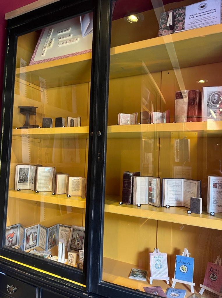 We saw displays of books, some written in a more older English charm, some smaller books that fit into the palm of your hand, others with collages of historical moments and information. There was also a trail, a ‘Book-and paper-arts trail’ dotted around the store and in different display cases which showed information about certain works of art, artists, books and more.