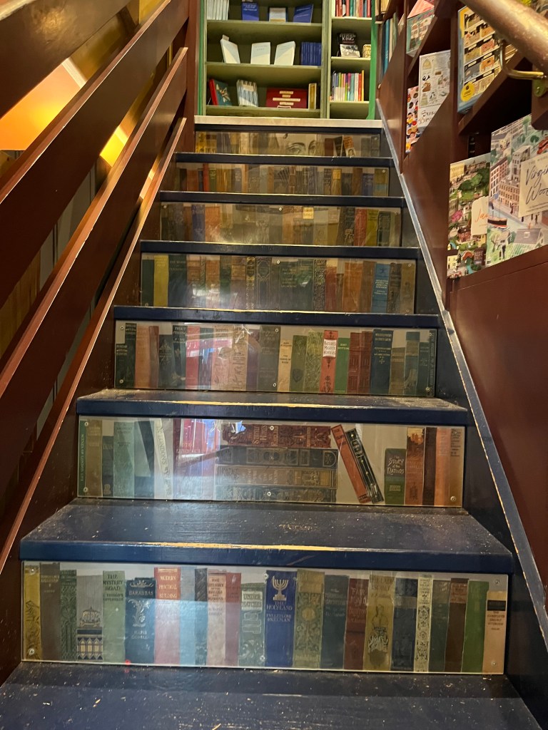 Another detail I adored about this bookstore was the stairs that led up to the first floor, they were decorated with book spines, so it looked like a bookcase as you climbed the stairs which was amazing. If my house had stairs I would totally steal this idea and create a book spine staircase.