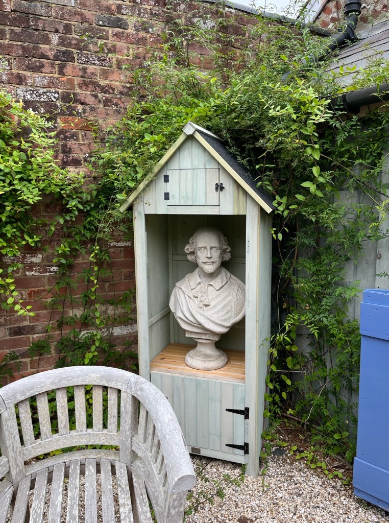 Outside of the shop is also especially picturesque, tranquil and beautiful. A bench with books engraved into the wood sits at one end, a gorgeous vine arch stands before a statue of the one and only ‘Shakespeare’ along with a sweet little table and chairs for people to sit in and enjoy the sun with a new book and the bumble bees and butterflies that would be attracted to the stunning flowers such as Lavender they grow in their gardens.